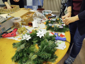 Začali sme už prvou Adventnou nedeľou tradične spojenou s výrobou adventných vencov a Charitatívnym bazárikom, kde ponúkame nielen naše handmade výrobky ako plátené tašky a vrecká, sviečky, mydielka, levanduľové vrecúška , vianočné ozdoby, náušnice , vankúše a puzdra na okuliare, ale aj hračky a knižky, ktoré sme dostali a vraciame späť do obehu :).